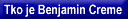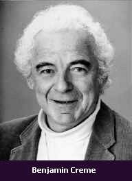 izučenog slikara modernističkog stila. Prijateljevao je i surađivao s vodećim ljudima tadašnjeg vremena u Britaniji na području likovne umjetnosti, glazbe i književnosti, a njegove slike bile su izložene u brojnim prestižnim galerijama. Kroz svoju mladost Benjamin Creme proučavao je također različite vidove ezoterične filozofije, a posebno učenja objavljena krajem 19. stoljeća preko Helene Petrovne Blavatsky, Teozofskog društva i kasnije Alice A. Bailey. Premda su ga ta učenja dovela do vjerovanja u postojanje Majstora mudrosti — skupine usavršenih ljudi koji su čuvari Božjeg plana za ovaj planet — svejedno je bio potpuno zatečen 1959. godine kada je s njim stupio u vezu jedan od Majstora. Između ostalog, bilo mu je rečeno da će se Krist — Majstor svih Majstora — vratiti za približno dvadeset godina i da će on (Creme), ako na to odluči, odigrati aktivnu ulogu u tom događaju. 1972. godine je pod vodstvom svojeg Majstora započeo razdoblje napornog i intenzivnog treninga, a da bi se pripremio za svoj nadolazeći zadatak: objavljivanje skeptičnom svijetu dolaska Krista, Učitelja svijeta kojeg su pod različitim imenima — Krist, Mesija, Imam Mahdi, Krishna, Maitreya Buddha — očekivali ljudi svih religija. Cremova stalna veza s Majstorom mudrosti omogućila mu je jednostavan pristup najnovijim informacijama o procesu Maitrejinog izlaska u javnost i pružila mu potpunu uvjerenost potrebnu za to da predstavi tu informaciju. 1975. godine Creme je na pozive novodobnih skupina počeo predavati po Europi. Tijekom svoje prve turneje u SAD-u govorio je brojnim slušateljima u mnogim najvećim gradovima. Njegove turneje sada uključuju istočnu i zapadnu Europu, Japan, Australiju, Novi Zeland, Kanadu, Meksiko i SAD. Samo u Sjedinjenim Državama dao je više od 500 intervjua na radijskim i TV postajama. Cremove knjige o Kristovom povratku su skupine koje se odazivaju na njegovu poruku prevele i objavile na brojnim svjetskim jezicima, između ostalih na francuski, njemački, kineski, japanski, španjolski, grčki, slovenski i ruski jezik. Benjamin Creme je također suurednik časopisa Share International koji izlazi mjesečno i čita se u više od 70 zemalja, a fokusira se na političke, ekonomske, društvene i duhovne promjene koje se sada događaju po cijelom svijetu. Benjamin Creme za taj posao ne prima nikakvu plaću i ne postavlja tvrdnje o vlastitom duhovnom statusu. Te činjenice, zajedno sa njegovom autentičnošću, inteligencijom i humorom, daju vjerodostojnost ovoj priči koja bi se u suprotnom činila nevjerojatnom i navode desetke dobro poznatih medijskih ličnosti da se slože s domaćinom i producentom kanadskog CBS-a koji je rekao: "Priča o Maitreji je važna, a Creme je hvalevrijedan govornik." Od njegovog prvog javnog govora 1974. godine milijuni ljudi su čuli Cremovu poruku nade, a mnogi su bili nadahnuti da pomognu u obznanjivanju te priče širom svijeta. "Moj zadatak je," kaže Creme, "napraviti početan pristup javnosti kako bih pomogao stvoriti ozračje nade i očekivanja u kojem će se Krist Maitreja moći javno objaviti, a da ne prekrši slobodnu volju ljudi." Benjamin Creme sa suprugom i djecom živi u Londonu. |