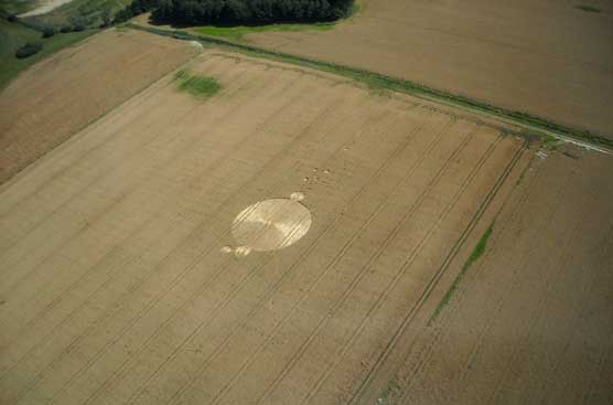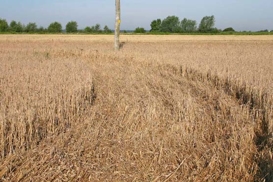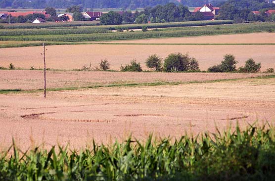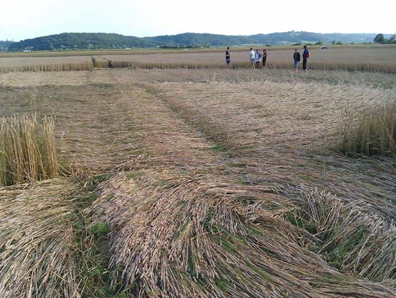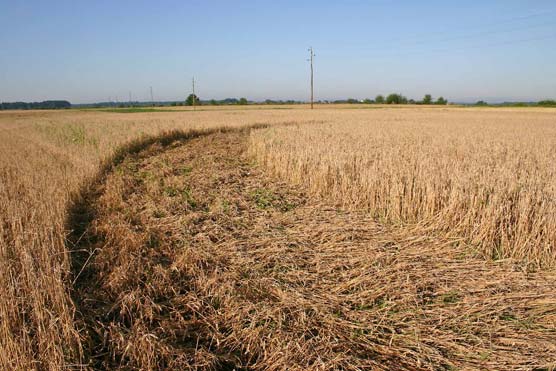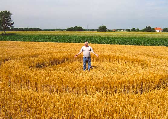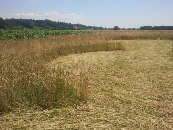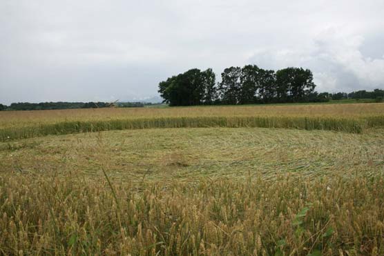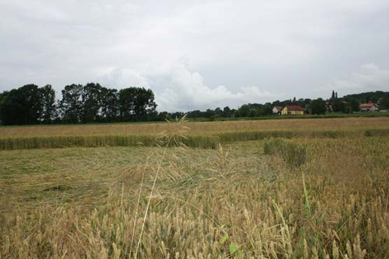 V tem žitnem krogu so na tleh našli ptičje gnezdo polno jajc. Žito je bilo poležano okoli gnezda in nobeno jajce ni bilo poškodovano. Fotografija: Pegi.