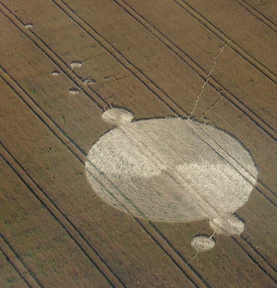 Zgornji Porčič (pri Sv. Trojici) (2011) / 2 Iste noči kot zgornji lik, s 23. na 24. junij, je slab kilometer južneje nastal še en lik, ki je sestavljen iz večjega števila krogov. Premer večjega kroga je približno 30 metrov. Informacijo o tem liku in fotografijo iz tal je poslal Kristijan Švarc. Fotografiji iz zraka je poslala Darja Kovač.